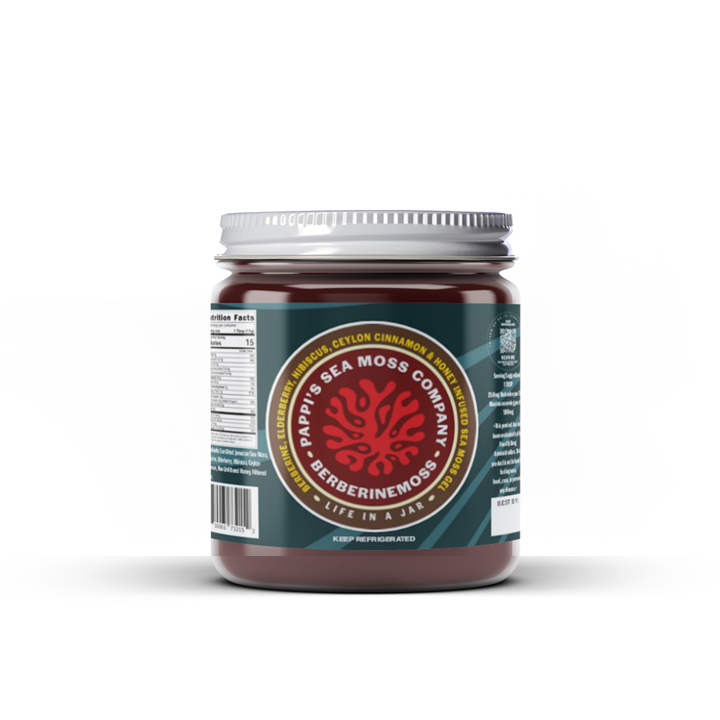 The BerberineMoss: Berberine extract, Elderberry, Hibiscus, Ceylon Cinnamon, and Honey infused Sea Moss Gel.