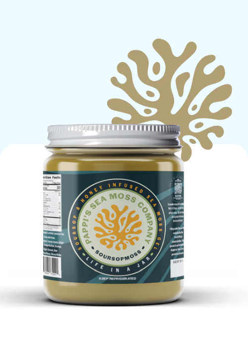 The SoursopMoss: Soursop and Lemon Balm infused Sea Moss Gel.